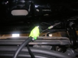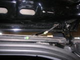 | Use tape to temporarily secure the wire or hose to the hood cable. Pull it on through and you're done. |