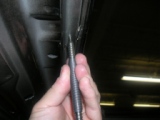 | What if you get excited and forget? (were you thinking about the money again?) A body man showed me this trick: Use an old hood release cable to fish through the channel. Or a bicycle brake cable. When these are still in their sleeves they are stiff yet flexible enough to get you down there. |