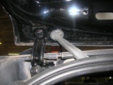 | Once you have all the bolts out, you can lower it by loosening the ropes. Try to lower it evenly as possible. Notice the pictures below and how much gap was gained. Reclining the seats gives you more room to drop even further. |